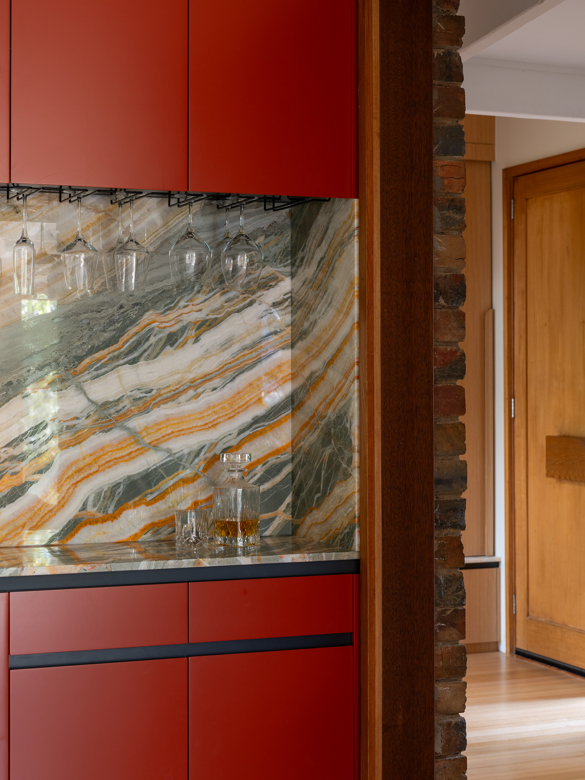 Bar cabinet with stone bench top. Designed by Blend Interiors & Architecture. Photographed by Tiago Brissos
